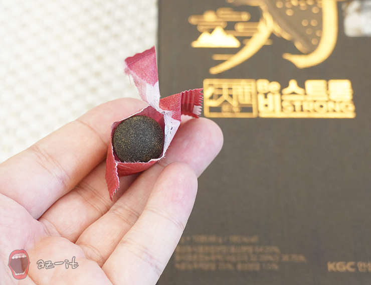 밀봉된 포장을 열면 동그랗게 빚어진 형태의 환을 확인할 수 있는데요, 그대로 꼭꼭 씹어 섭취하면 됩니다. 맛 자체는 달지 않은데도, 몸에 좋다는 생각이 들어서인지 입안에 감도는 향이나 맛이 무척이나 달콤하게 느껴질 정도였습니다.