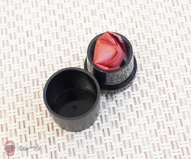 소분되어 있는 케이스를 열면 공기가 통하지 않도록 단단하게 밀봉되어 있는 내용물을 확인할 수 있습니다. 손가락 한마디 정도 되는 크기의 내용물 안에 녹용 원물기준 1g 이 포함되어 있어 하루 한 알이면 충분할 것 같습니다.