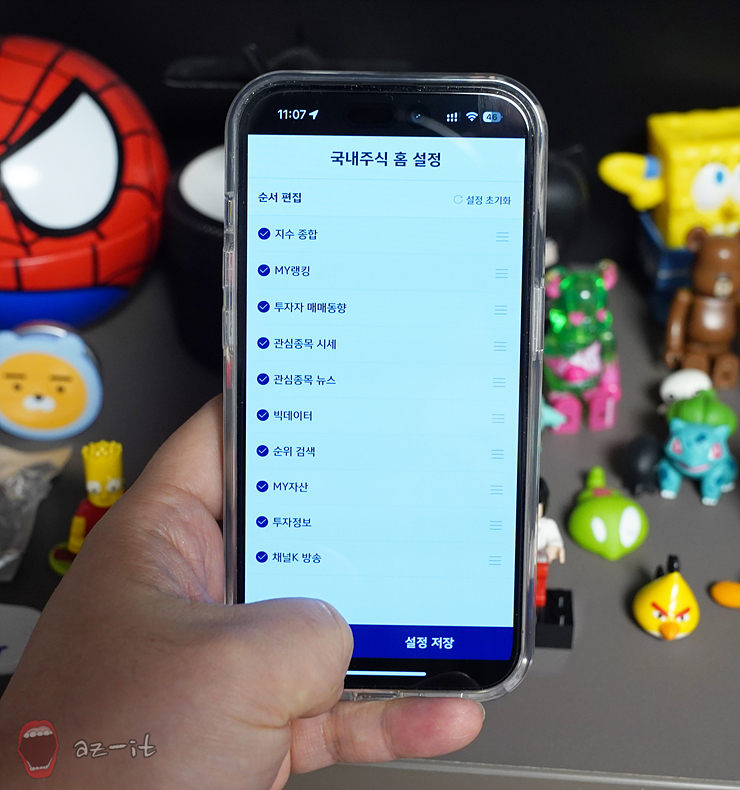 국내주식 홈의 경우 지수 종합부터 MY랭킹, 투자자 매매동향, 관심 종목 시세, 관심 종목 뉴스, 빅데이터, 순위 검색등 접속과 함께 확인할 수 있는 항목들을 원하는 순서대로 배치해 관심 있는 내용을 보다 빠르게 설정할 수 있습니다. 설정한 순서가 마음에 들지 않는다면 설정 초기화를 통해 기본 설정으로 되돌아 가능 것도 가능해 편리합니다.