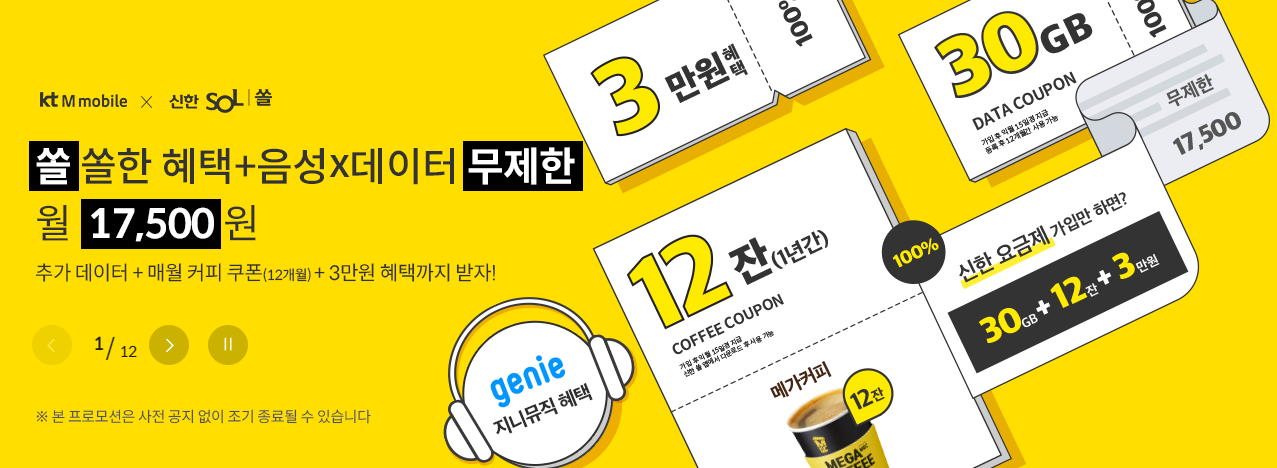 kt M 모바일 요금제 중에서도 신한 SOL 요금제는 제공되는 혜택이 많아 알뜰폰 요금제를 고려하시는 분들이라면 주의 깊게 볼만합니다. 신한 은행을 주로 이용하는 분들은 물론, 신한은행을 이용하지 않아도 제공되는 혜택을 모두 받을 수 있습니다.