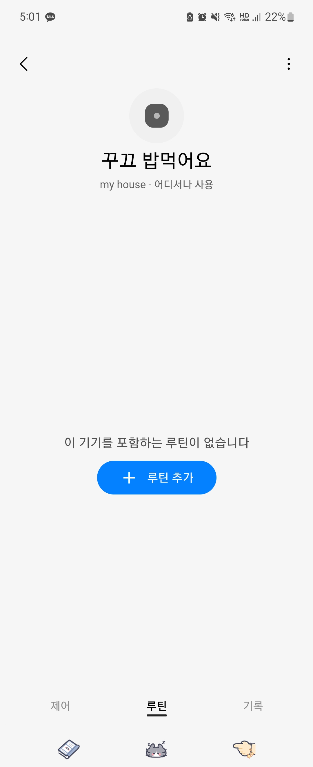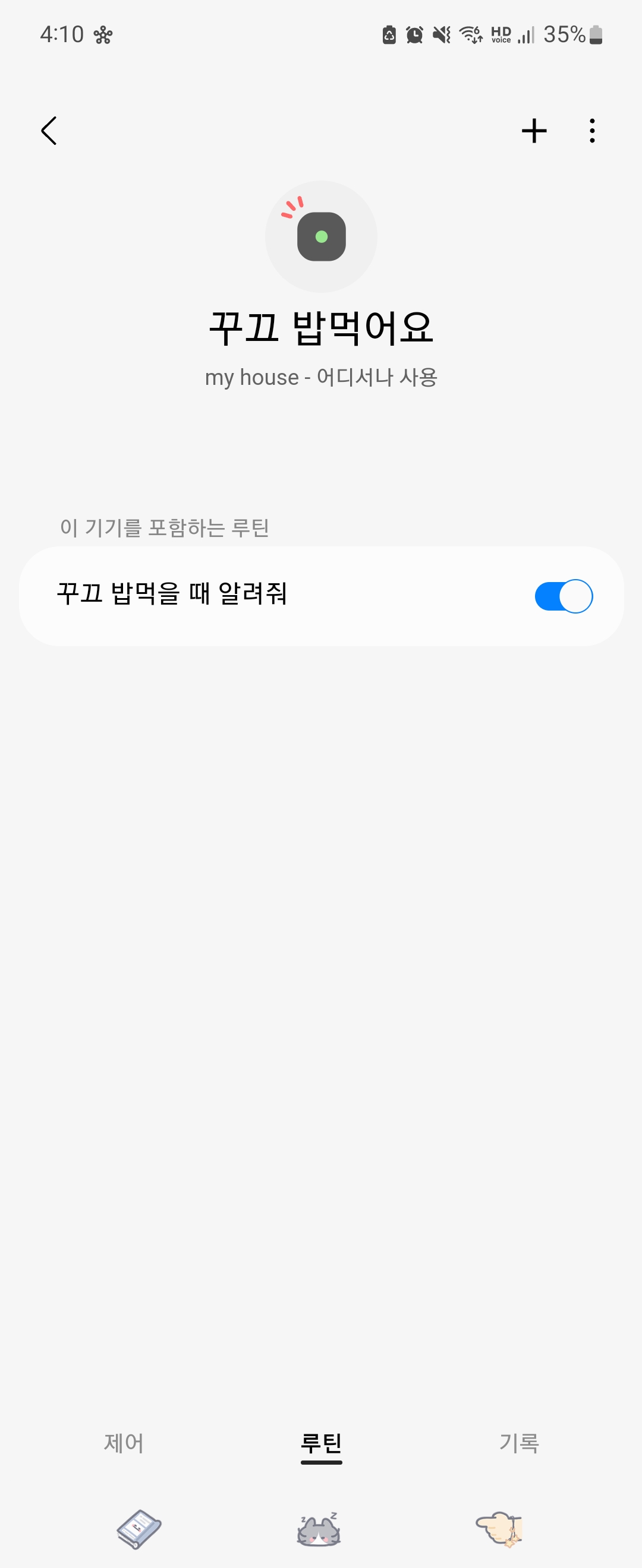 기기 등록이 완료되었다면 기기 이름을 설정하고 원하는 루틴을 추가할 수 있습니다. 루틴은 시간/ 기기상태/ 멤버 위치/ 장소 상태/ 날씨 설정을 통해 원하는 상황을 선택하고 해당 설정에 따라 자동으로 실행되기 때문에 매번 설정하고 관리해야 하는 번거로움이 없어 편리합니다.