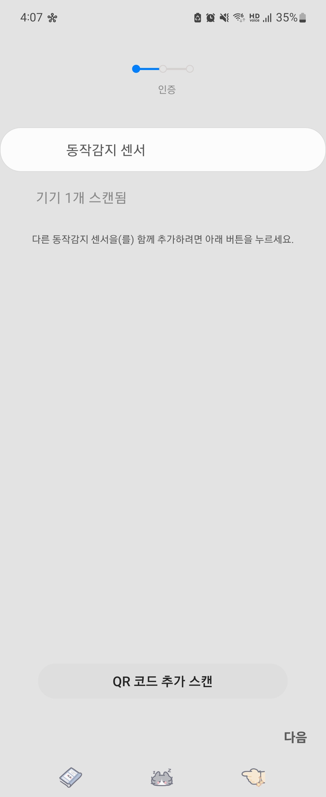 동작감시 기기등록 및 센서 설정도 어렵지 않은데요, 원하는 곳에 센서를 설치한 후 스마트싱스 앱을 열어 제품 스캔을 진행하여 기기를 연결하거나, 스마트싱스 앱 기기 추가 목록을 통해 유형별 또는 제조사별 기기 항목을 선택하여 해당 제품을 선택 후 등록할 수 있습니다.