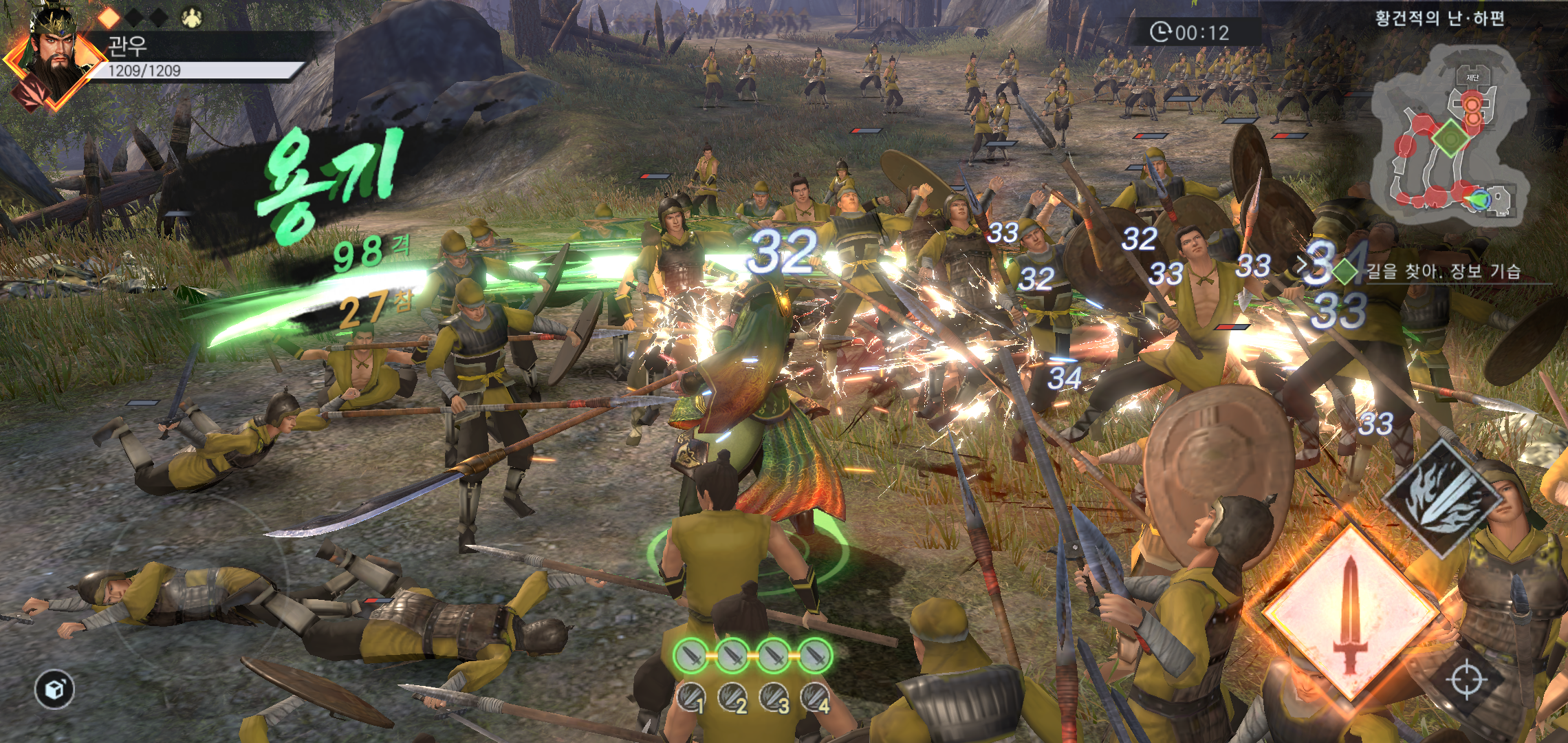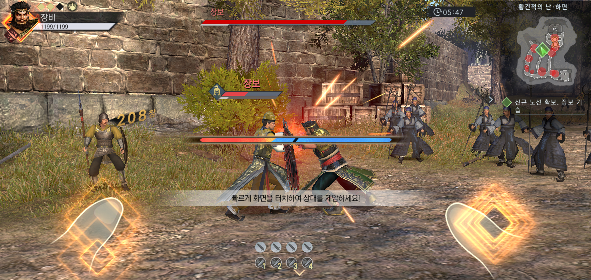 장수와 맞붙는 상황의 경우 일반적인 전투뿐만 아니라 상대를 제압하기 위한 힘싸움도 진행되어 전투의 긴장감을 더욱 높여주고 있기도 합니다.