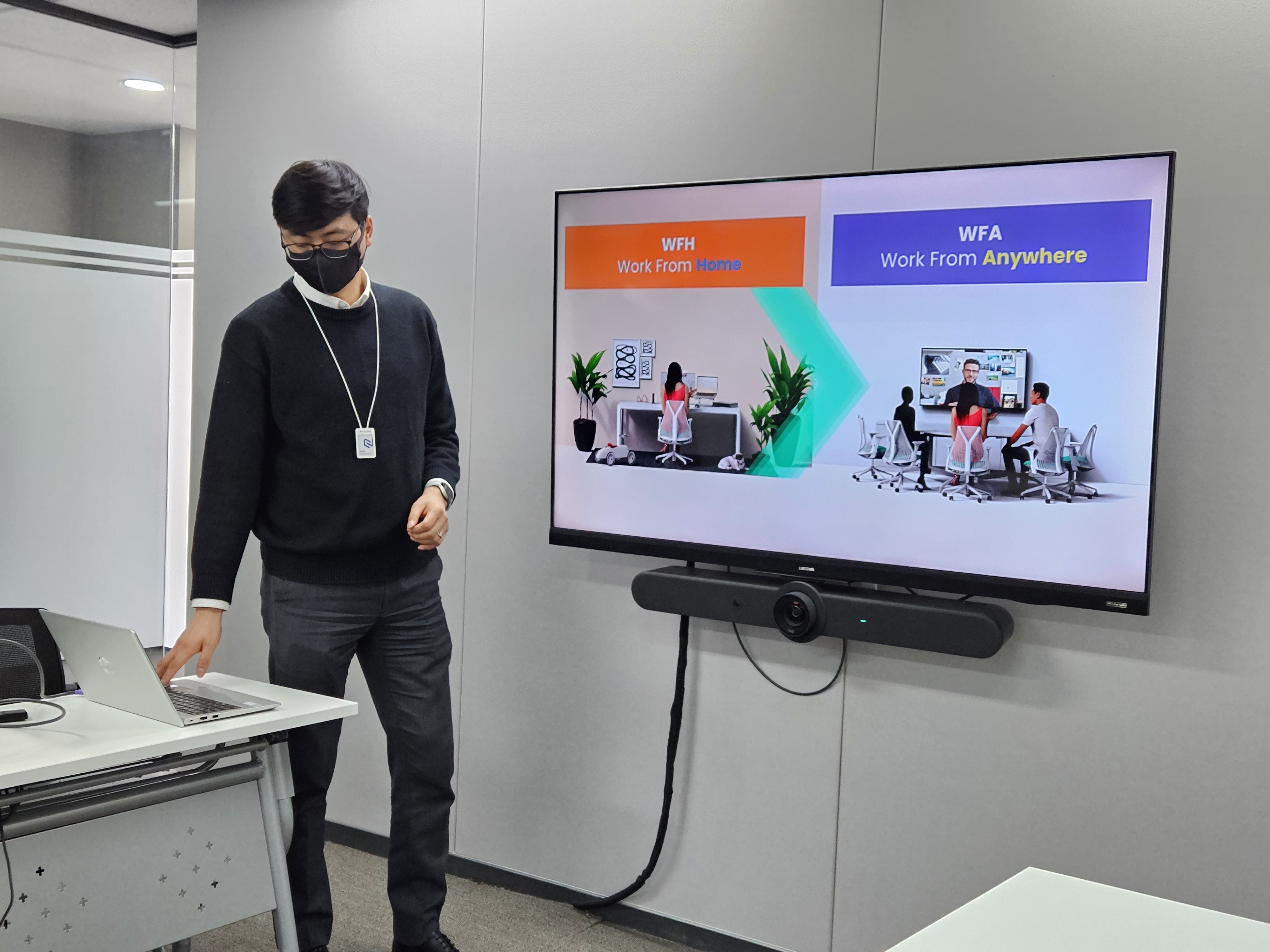 시연회는 화상회의에 필요한 제품 3종에 대한 소개와 제품 전시로 이루어졌습니다. 소형/허들룸을 위한 UHD 올인원 컨퍼런스 캠과 확장된 오디오 범위에 대한 음소거 컨트롤이 있는 MeetUpdyd 애드온 마이크 그리고 회의와 프레젠테이션, 스트리밍 등에 최적화된 솔루션인 SWYTCH에 대한 자세한 설명을 들을 수 있었습니다.