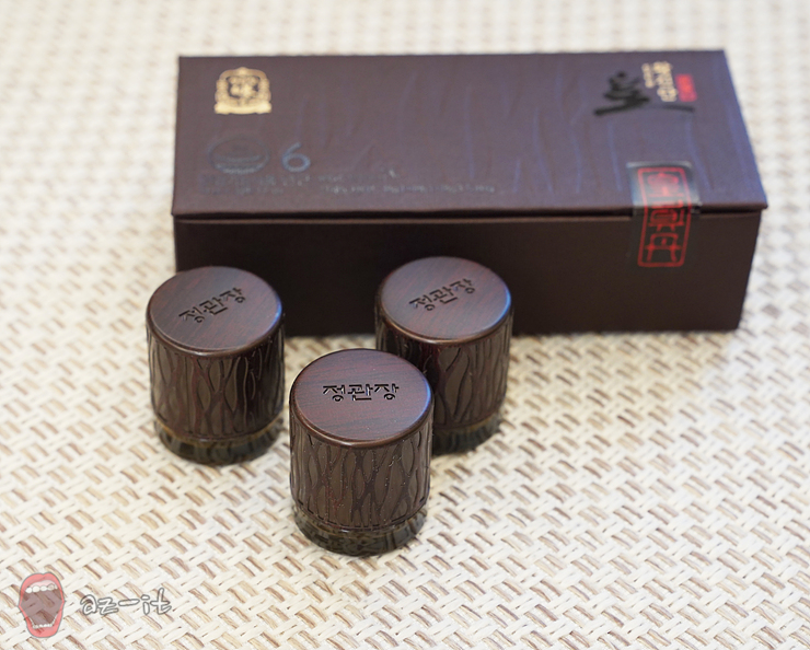 정관장 황진단은 3환으로 구성되어 있으며, 개별 포장으로 구성되어 있습니다. 각 환은 정관장 고로가 새겨진 각각의 케이스에 담겨 있는데요, 상위 2% 수준의 홍삼인 지삼을 주원료로 만든 프리미엄 제품인 만큼 고급스러움이 더한 점이 눈에 띄는 부분입니다.