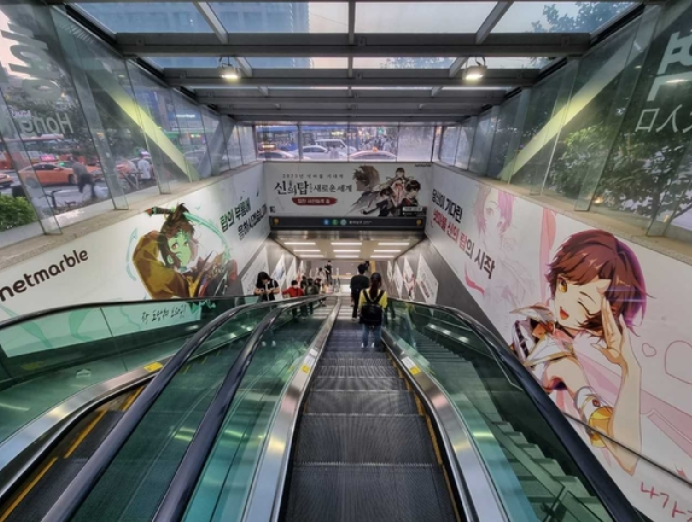 넷마블 기대작인 만큼 신의탑 새로운 세계를 알리는 광고 규모도 어마어마합니다. 각종 매체와 방송 외에도 서울 홍대 입구역 인근 대형 전광판 4곳에 옥외광고를 게재하고, 홍대 입구 출입구에도 캐릭터를 소개하는 광고를 진행하고 있어 이번 홍보는 정말 각 잡고 제대로 하는구나 싶은 생각이 들 정도입니다.