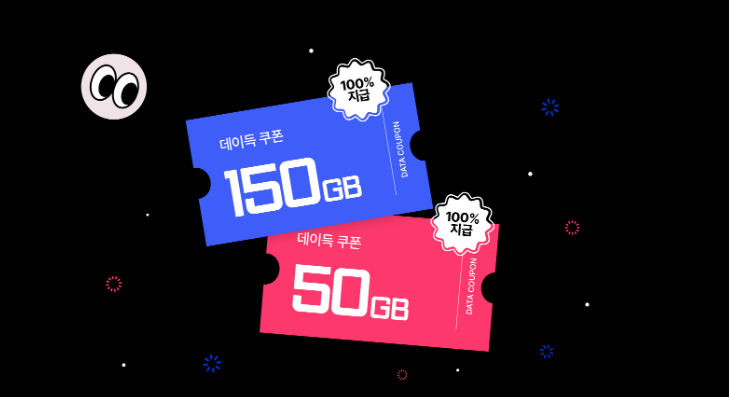 데이득 프로모션은 24개월 동안 월 최대 150GB 데이터를 추가제공하는 혜택으로 선택한 요금제 데이터에 추가 데이득이 더해져 총데이터가 늘어나는 방식입니다. 예를 들어 데이터 맘껏 +15GB/100분+ 요금제를 사용하는 분들의 경우 데이득 프로모션 데이터가 추가되면서 24개월간 한 달 기준 50GB 데이터를 사용할 수 있습니다. 타 통신사에서 동일한 조건의 요금제를 선택할 때 발생하는 비용을 따져보면 사이즈부터 다르다는 게 느껴질 정도입니다.
