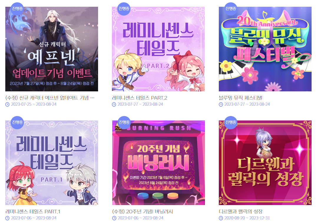 이외에도 테일즈위버 20주년을 기념한 이벤트가 다양하게 준비되어 있습니다. 참여만 해도 캐릭터 육성에 도움이 되는 이벤트가 진행 되고 있는데요, 참여방법도 어렵지 않아 가벼운 마음으로 도전할 수 있는 만큼 공식홈페이지 이벤트를 확인 후 참여해 풍성한 선물도 챙겨보시기 바랍니다.