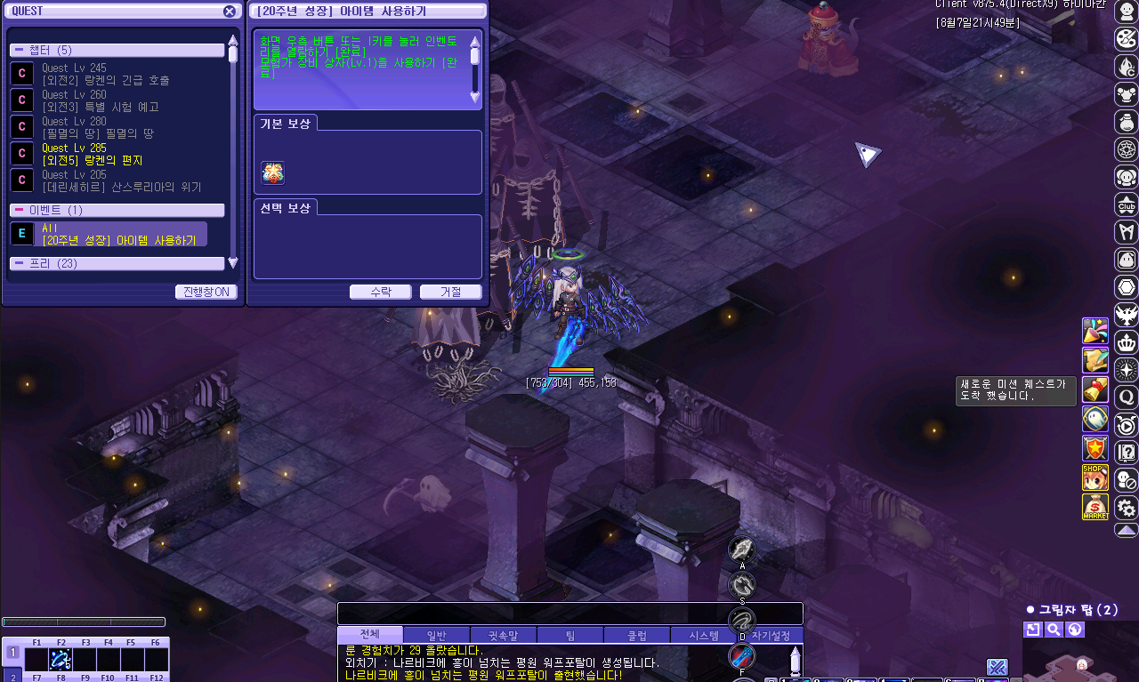 예프넨을 플레이 하기에 앞서 가장 중요한 점! 바로 프롤로그 입니다. 프롤로그를 끝내면 285레벨부터 플레이를 진행할 수 있기 때문인데요, 차근차근 레벨업을 통한 육성의 재미를 즐기고 싶다면 프롤로그를 그냥 넘기셔도 된답니다. 하지만 직접 사냥을 통해 레벨업에 걸리는 시간을 감안한다면 프롤로그를 모두 완료하고 285레벨부터 시작하는걸 추천드립니다.