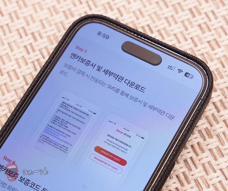 차량을 구매했다면 사전에 받아둔 엔카보증 SMS 가입링크를 클릭해 가입 정보를 입력하고 보증료를 결제해야 합니다. 보증료를 결제하면 엔카 보증서와 세부약관 다운로드가 가능합니다. 이후 선택사항으로 엔카닷컴 마이페이지에서 엔카보증코드를 등록하면 해당 차량에 대한 이력관리가 가능합니다.