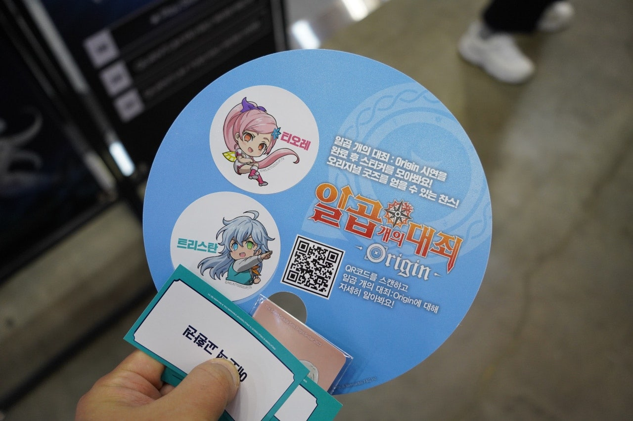 일곱개의 대죄 origin 시연에 참여하면 선물을 받을 수 있는 이벤트도 진행 중입니다. 시연에 참여하고 부채에 스티커를 채우면 에코백이나 블루투스 스피커등의 굿즈와 경품을 수령할 수 있는 기회가 주어집니다.