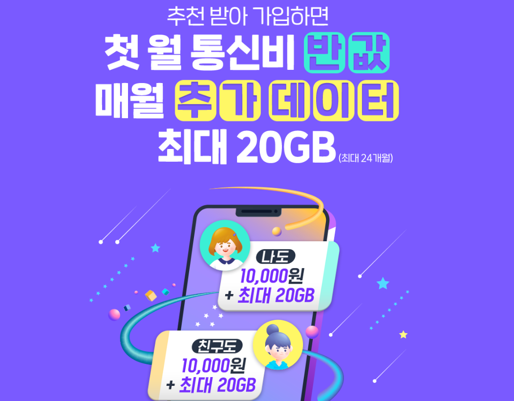 12월 한정혜택으로 추천한 사람과 추천받은 사람 모두 데이터 쿠폰을 최대 20GB를 24개월간 제공합니다. (단, 대상 요금제에 따라 다름) 추천인의 경우 수에 따라 기본요금의 일부를 U Point로 포인트 백 받을 수 있어 2명 이상 추천 시 0원으로 통신비를 사용할 수 있어 파격적입니다. 피추천인도 가입 시 월 기본료의 50% 를 U Point로 포인트백 받을 수 있고 신세계 상품권 1만 원 100% 지급과 추가 신규 혜택도 준비되어 있으니 통신비도 절감하고 다양한 이벤트 혜택도 받고 싶다면 유모바일에서 시작해 보시기 바랍니다.