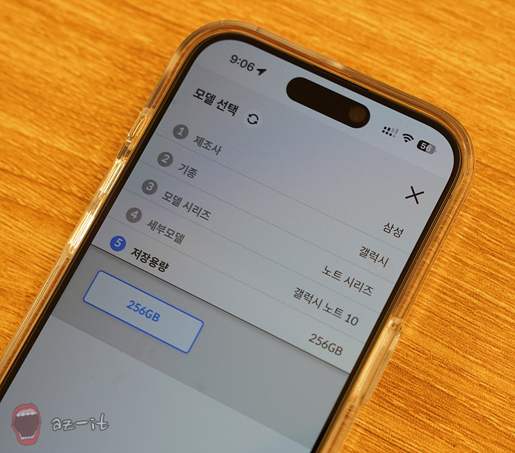 내폰 판매하기를 통해 보유하고 있는 갤럭시 노트 10 정보를 입력했습니다. 제조사, 기능, 모델시리즈, 세부모델 그리고 저장용량까지 꼼꼼하게 체크했어요.