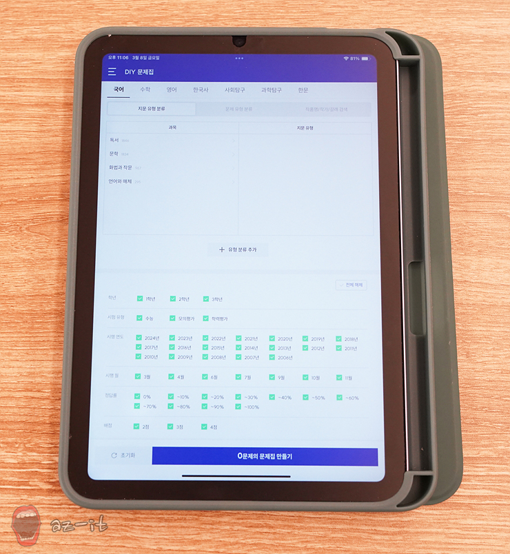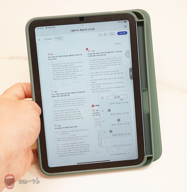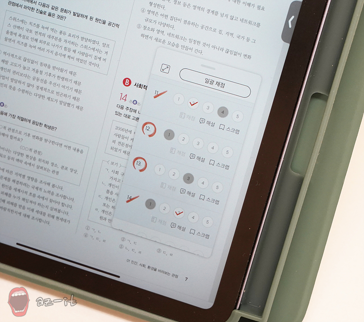 특히 기출탭탭 ebook의 경우 단순히 눈으로 보고 공부하는 학습 스타일이 아니라 OMR카드를 이용해 학습이 가능하기 때문에 실전에 가까운 학습을 할 수 있다는 점이 특징입니다. 수능과 내신 준비시 시간 배분까지 준비할 수 있어 유용합니다.