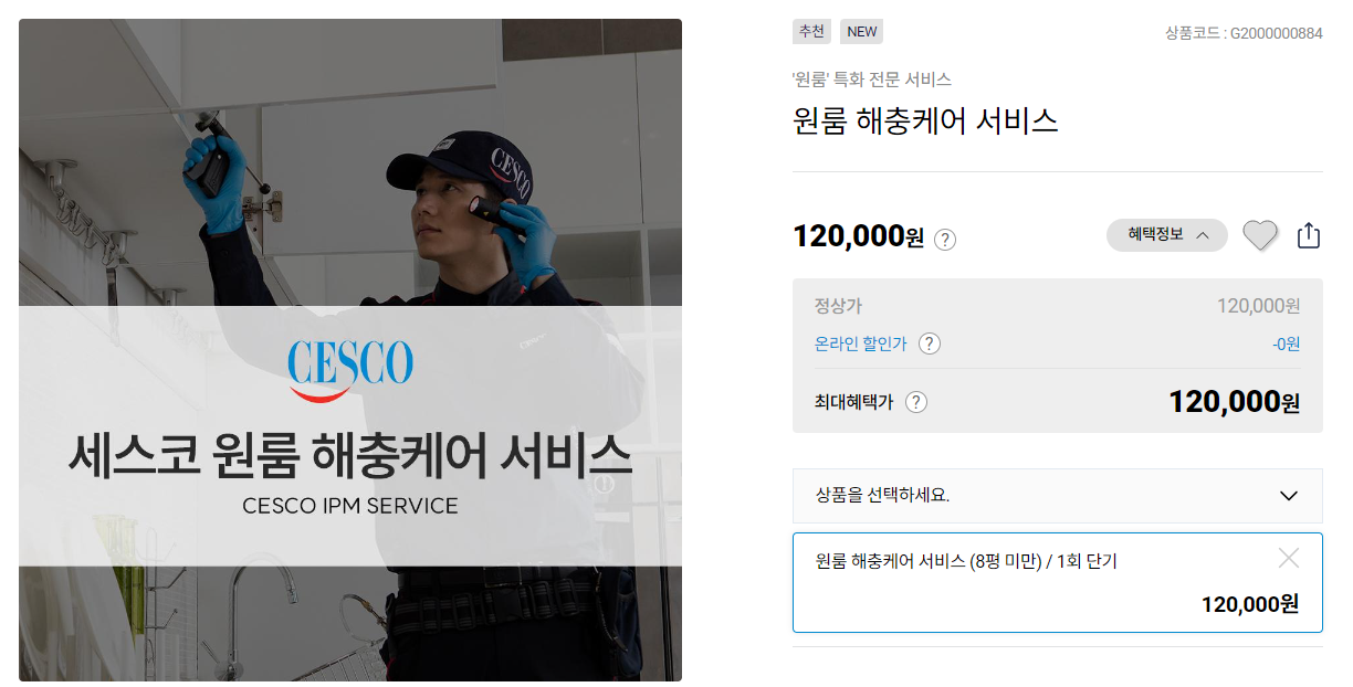 세스코 원룸 해충 케어 서비스 신청도 간편합니다. 온라인에서 상품을 구매하듯 손쉽게 원룸 서비스 신청이 가능한데요, 원룸 평수에 따라 상품을 선택하고 구매하면 교육받은 전문가인 세스코 서비스 컨설턴트와 약속을 잡고 사전진단부터 해충 케어 서비스를 진행하고 있어 편리합니다.