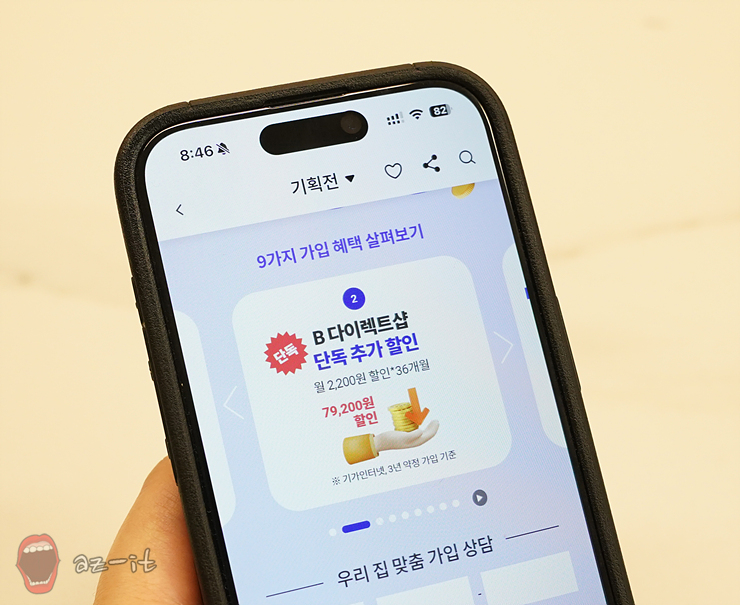 B다이렉트샵에서 선택가능한 인터넷티비결합의 경우 최대 295만원 혜 혜택을 받을 수 있어 실로 엄청난 규모라고 할 수 있습니다. 무엇보다 B다이렉트샵을 통해 인터넷티비결합 상품 가입만 하면 9가지 혜택을 모두 받을 수 있어 이보다 더 좋은 혜택은 없는 듯합니다.