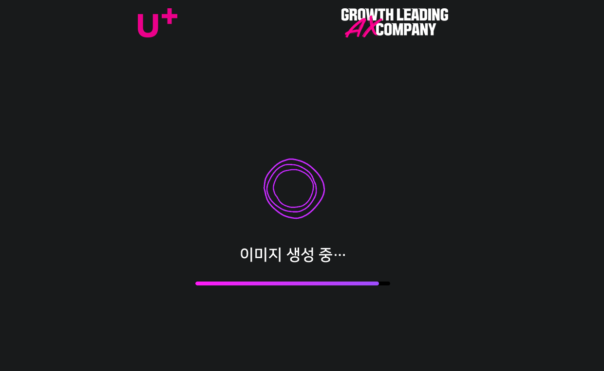LG유플러스에서 전달하는 <Growth Leading AX Company> 슬로건을 직접 경험하고 체험해 볼 수 있는 익시 AI 프롬프트 페이지도 공개되었습니다. 주어진 프롬프트 속 빈 칸에 들어갈 7가지 키워드 중 원하는 키워드를 클릭하면 관련 컨셉으로 이미지가 생성되는 방식으로 홈페이지에 접속하면 누구나 나만의 AI 이미지를 생성할 수 있습니다.