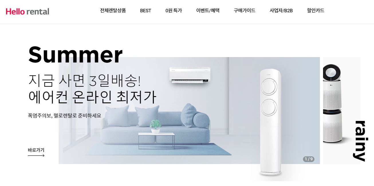 제습기 렌탈도 이벤트가 시작되어 월 900원 비용으로 렌탈이 가능합니다. 제품에 따라 별도의 비용이 지급하지 않을수도 있는데요, 올여름 LG헬로렌탈에서 원하는 제품을 선택하고 초기 구매비용에 대한 부담과 카드할인까지 모두 챙겨 합리적인 비용으로 무더위를 탈출해 보시기 바랍니다.