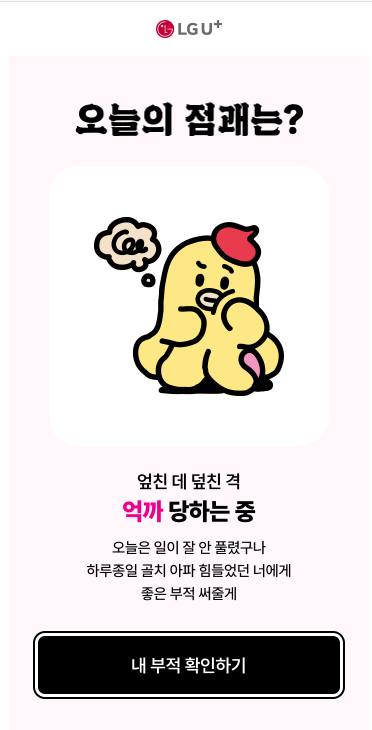 많은 분들의 사랑과 관심을 받았던 유플러스닷컴 무너부적 이벤트가 돌아왔습니다. 오늘의 운세를 확인할 수 있는 재미있는 테스트형 방식으로 참여 가능하고, 이벤트 참여 후 다이렉트 무료 유심을 신청 만해도 부적 스티커를 받을 수 있는 이벤트인데요, 통신사 변경을 고민하고 있는 분들이라면 더더욱 놓치기 아쉬운 소식입니다.