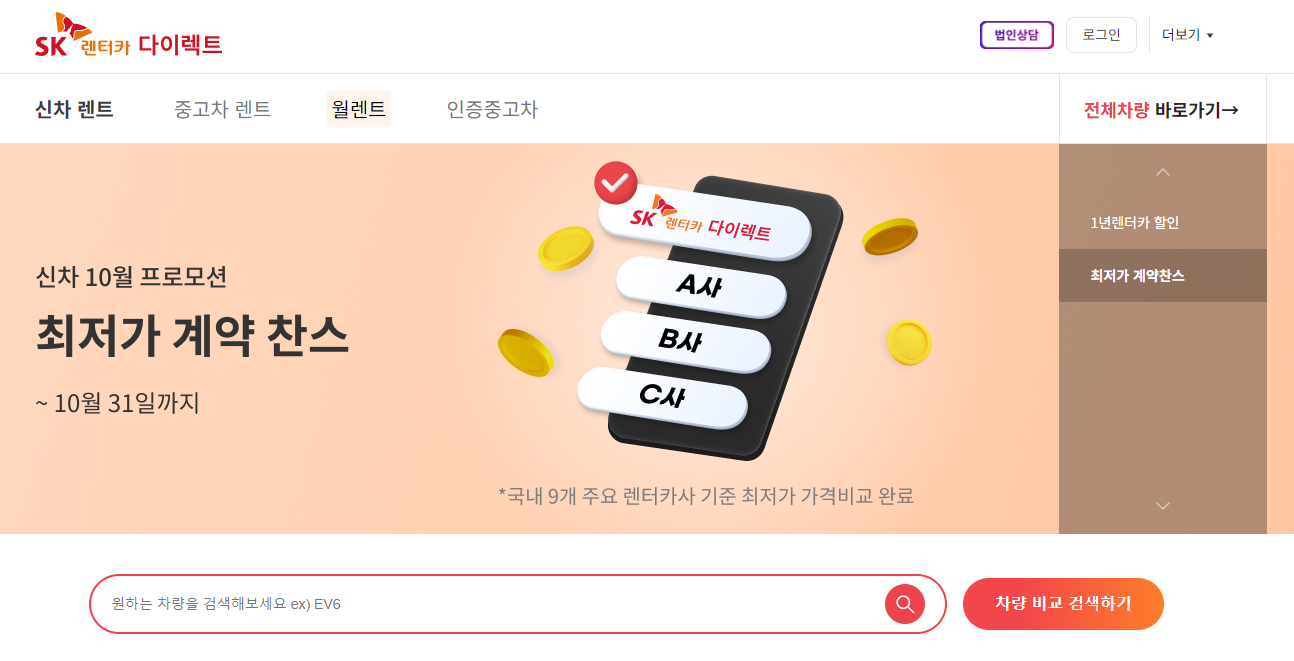 중고차장기렌트비용 SK중고차장기렌트로 가격 알아보기