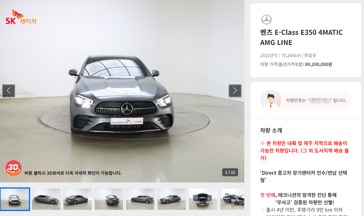 SK렌터카에서는 실제 보유하고 있는 차량만 제시하고 있어 허위매물에 대한 걱정도 할 필요가 없고 직접 관리 정비까지 마친 중고차만 제공하고 있어 믿을 수 있습니다. 특히 출시 4년 미만 주행거리 5천km ~ 12만 km까지만km까지 다양하게 보유하고 있는데요, 주요 기능 점검부터 소모품 교환 진행 및 상품과 완료된 차량만 있어 어떤 차량을 선택하더라도 만족도를 높여주고 있습니다.