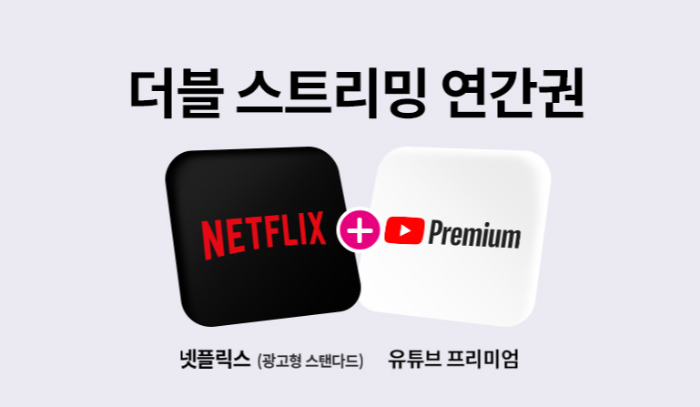 유독 더블 스트리밍 연간권은 이미 넷플릭스와 유튜브 프리미엄을 구독하고 있는 분들이나 이제막 사용하려는 분들도 유용하게 활용할 수 있는 조건인데요, 지금까지 두 서비스를 정상가로 각각 지출하면서 보고 있던 분들이라면 조건은 그대로이지만 비용을 세이브할 수 있고, 가입을 이제 막 하는 분들이라면 부담 없이 가입하고 활용할 수 있는 서비스라고 할 수 있습니다.