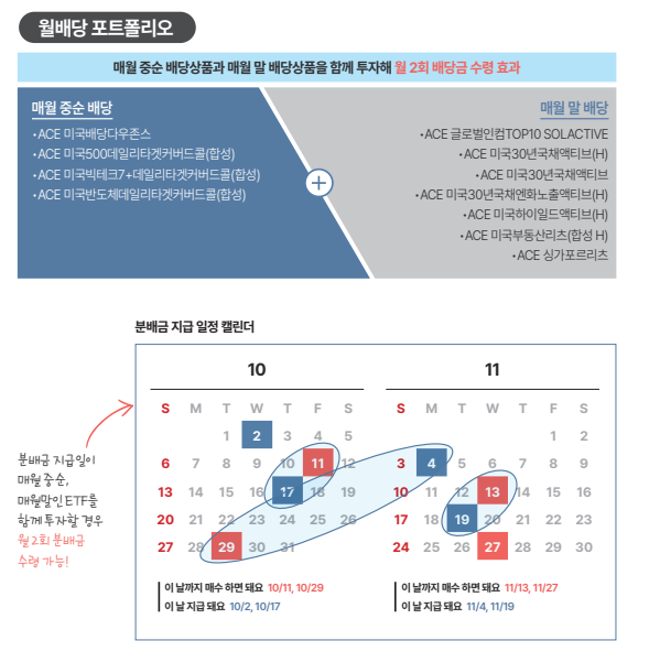 알아두면 좋은 내용들 중 다양한 상황에 따른 포트폴리오 예시는 처음 ETF를 시작하는 분들이라면 면밀히 살펴보는 것이 좋습니다. 투자 방법이나 분배금 지급등 원하는 방향으로 설정할 수 있는 방법을 알려주고 있기 때문입니다. 투자의 성향이나 방식에 따라 방향성을 잡아주고 있어 무엇부터 해야 할지 도통 감이 안 오는 분들도 보다 수월하게 계획을 세울 수 있습니다.