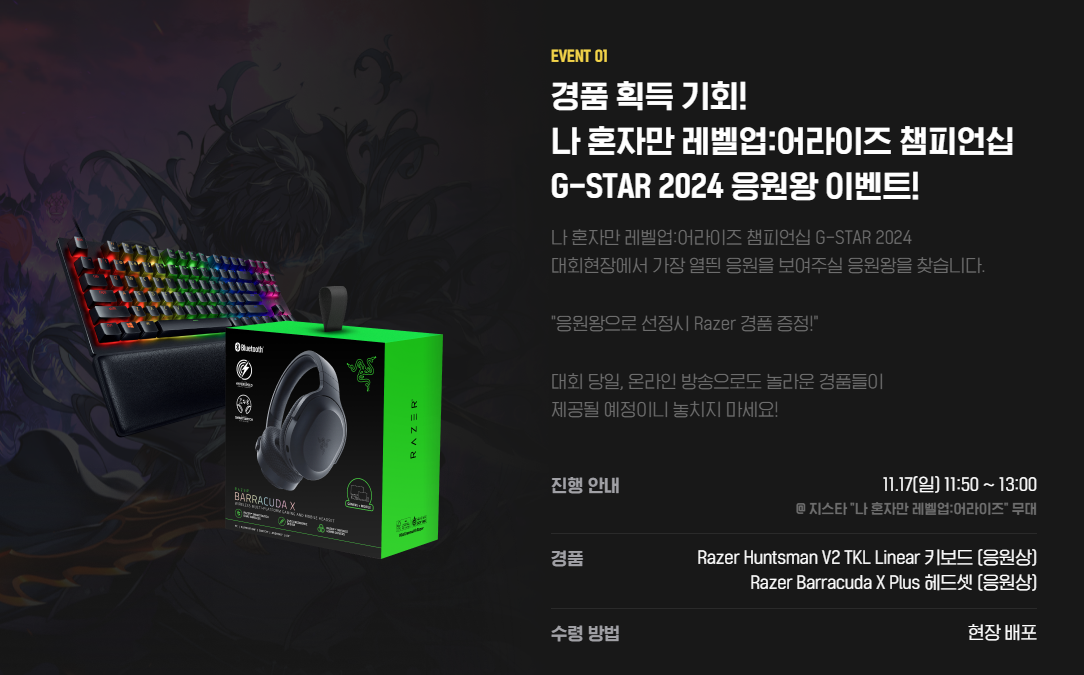 신작 2종 외에도 세븐나이츠 리버스, 킹 오브 파이터 AFK, 나 혼자만 레벨업: 어라이즈 이벤트도 준비되어 있으니 누구보다 먼저 신작도 즐겨보고 이벤트에도 참여해 풍성한 선물의 주인공이 되어보는 건 어떨까요? 참여만 해도 선물을 수령할 수 있는 만큼 조금만 빠르게 넷마블 부스로 발걸음을 해도 좋을 것 같습니다.