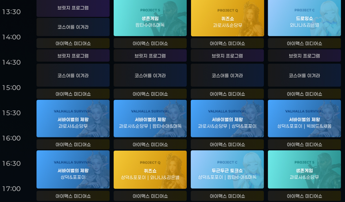 지스타 2024 행사가 진행되는 동안 라인온하트 무대 이벤트도 다채롭게 준비되어 있어 눈여겨볼만합니다. 아이맥스 미디어쇼를 시작으로 브릿지프로그램, 코스어를 이겨라 등 시간마다 다양한 즐길거리가 준비되어 있는데요, 무엇보다 인플루언서와 함께하는 프로그램도 준비되어 즐거운 시간이 될 것 같습니다.