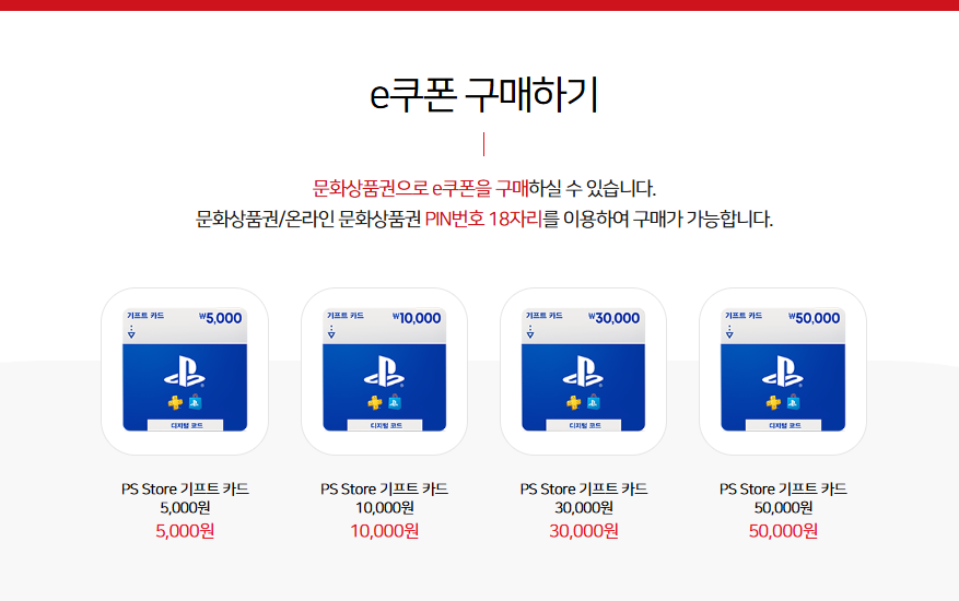 문화상품권은 온라인, 오프라인 매장에서 사용하지 않더라도 e쿠폰을 구매해 이용 가능합니다. 신세계 모바일상품권부너 구글 플레이 기프트 코드, PS스토어 기프트 카드등 다양한 곳에서 e쿠폰을 구매할 수 있습니다. 문화상품권 하나면 필요한 곳 어디서든 유용하게 사용할 수 있는 편리함 이제 문화상품권 하나로 누려보시기 바랍니다.