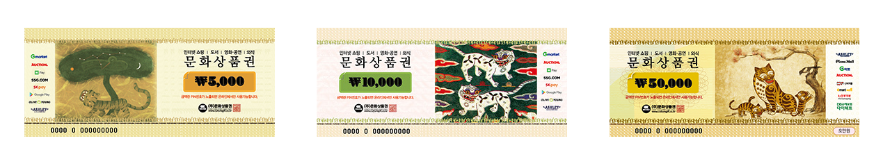 온. 오프라인 어디서든 사용가능한 문화상품권은 5,000원 권부터 10,000원, 50,000원 3가지 종류가 판매되고 있어 원하는 금액권을 구매할 수 있습니다. 사용처도 상당한데요, 서점이나 영화관을 비롯한 오프라인 2만여 사용처와 게임, 쇼핑등 1천여 온라인 사이트에서 금액권 상관없이 사용 가능합니다.