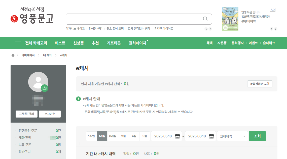 문화상품권 온라인 영풍문고에서 알차게 사용하기