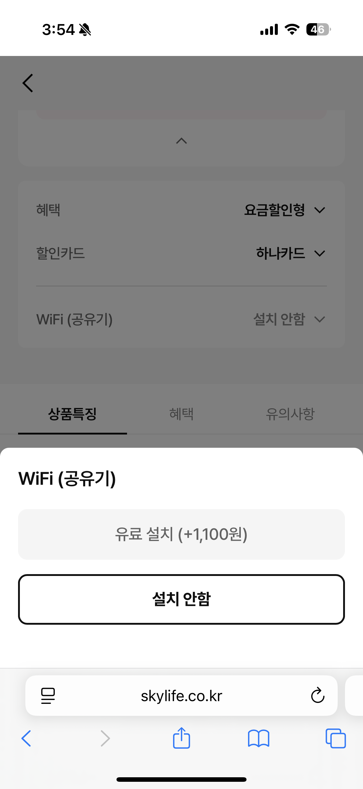 원하는 옵션을 선택해 요금을 확인했다면 설치하는 곳 주소를 시작으로 본인 휴대폰 번호와 이메일 주소를 기재해야 합니다. 이후 가입 가능한 본인인증 절차 후 본인 조회를 통해 본인임을 확인하면 설치 희망일과 시간을 선택하게 됩니다. 이후 납부방식까지 선택하고 본인인증 절차 및 청구서 발송 방법까지 선택하면 신청이 완료되고 희망하는 일자 및 시간에 설치가 진행됩니다.