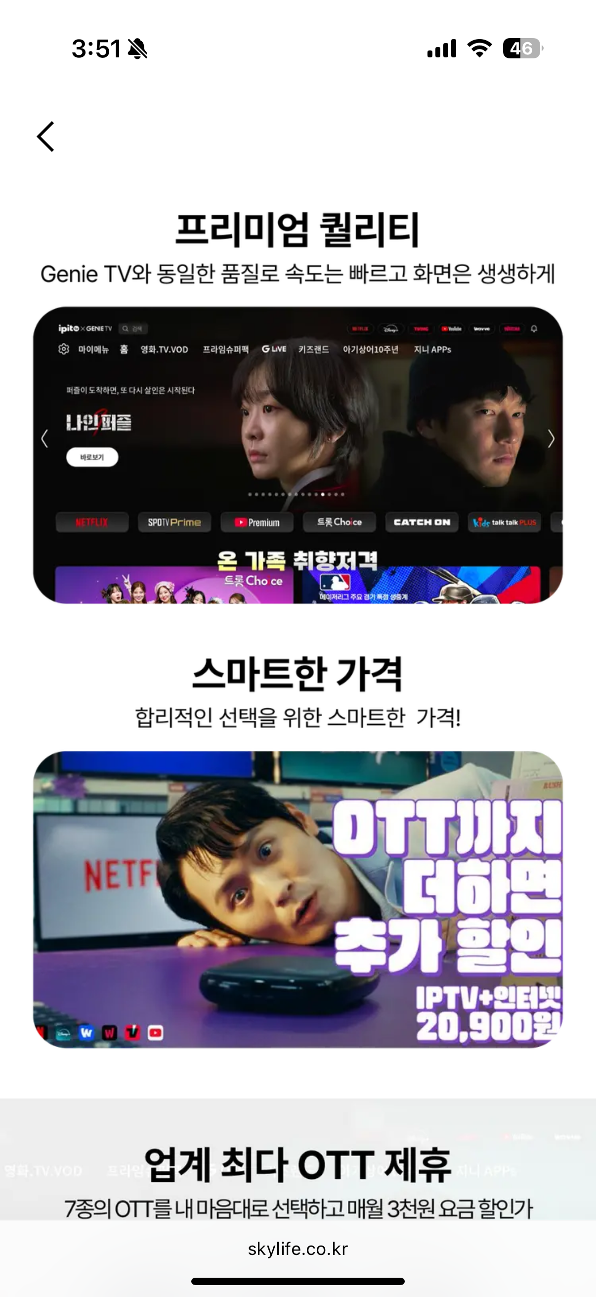 KT스카이라이프 IPTV는 Genie TV와 동일한 품질로 시청이 가능합니다. 무엇보다 속도가 빠르고 화면은 생생하게 시청 가능한 프리미엄 퀄리티를 자랑합니다.