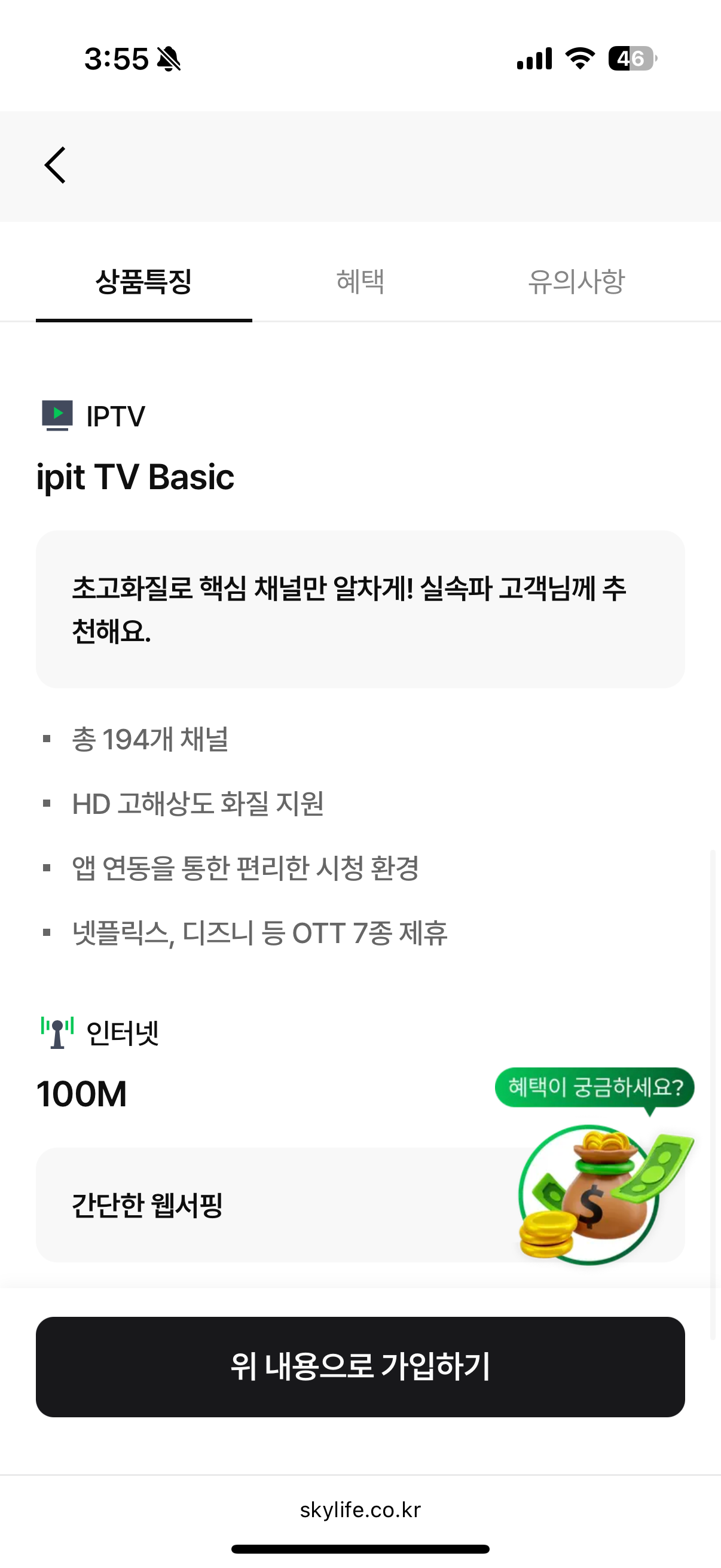 KT스카이라이프 IPTV 가입 시 상담을 통해 진행하는 방법도 좋지만, 셀프가입을 해야 하는 이유 바로 추가 혜택으로 주어지는 네이버페이 2만 포인트를 받을 수 있기 때문입니다. 여기에 현재 홈페이제에서 진행 중인 이벤트에 참여해 풍성한 선물의 주인공이 될 수도 있는데요, 합리적인 비용으로 IPTV 와 인터넷을 이용하고 싶은 분들이라면 지금 KT스카이라이프 홈페이지에서 내게 꼭 맞는 요금을 확인해 보시기 바랍니다.