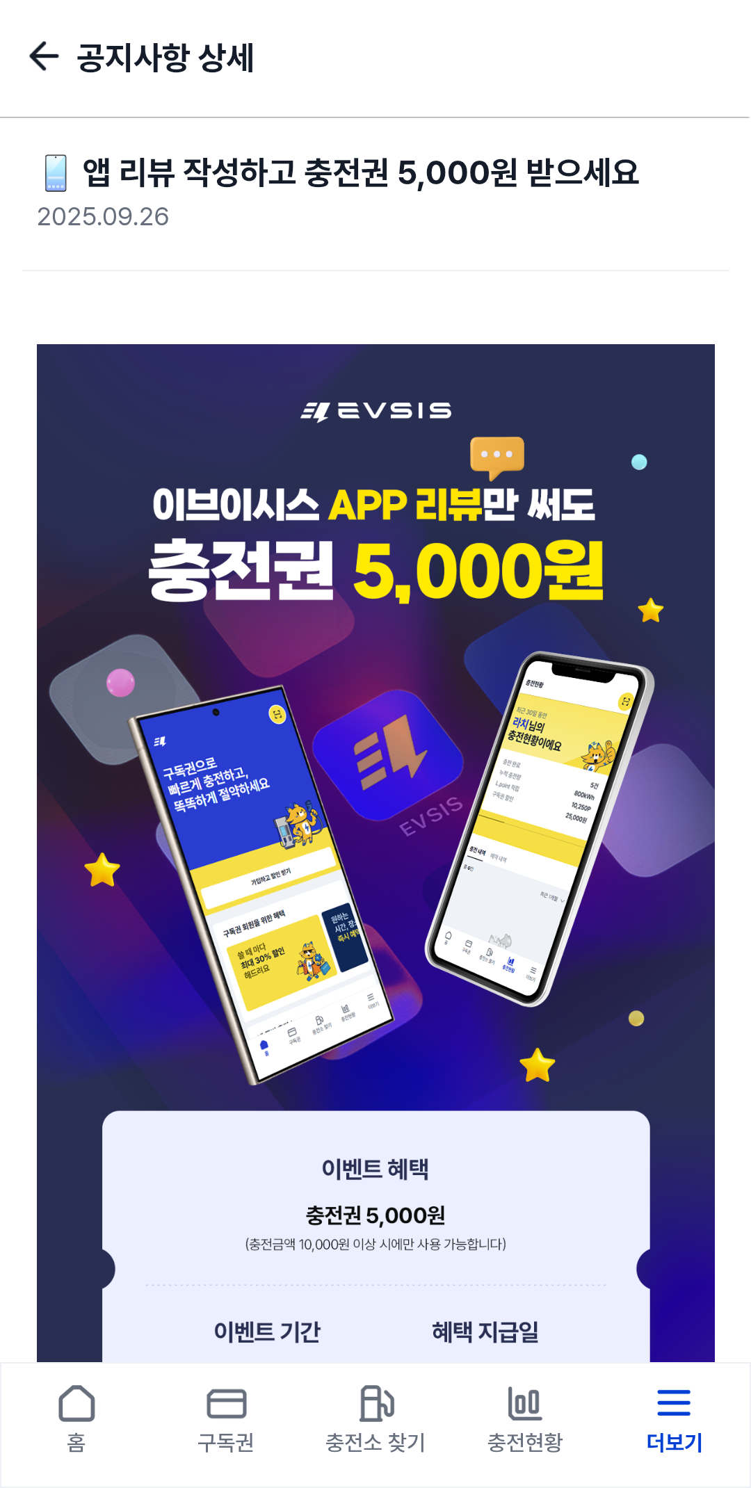 전기차 충전 앱 이브이시스 업데이트 이벤트 참여하고 선물 받고