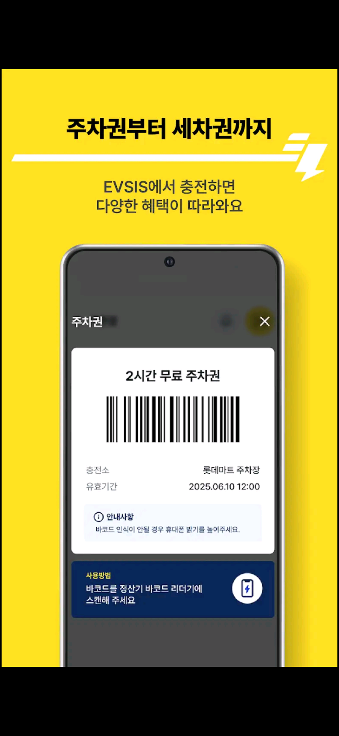 이 밖에도 세차 할인 이벤트를 비롯해 다양한 제휴 혜택이 준비되어 있습니다. 특히 롯데 계열 전기차 충전 기업으로서, 롯데마트·홈플러스 등 제휴처의 2시간 무료 주차, 롯데멤버스 포인트 적립 및 사용이 가능하다는 점도 큰 장점인 만큼, 전기차 운행의 필수 앱, 이브이시스를 통해 보다 합리적이고 편리한 충전 생활을 즐겨보시기 바랍니다.