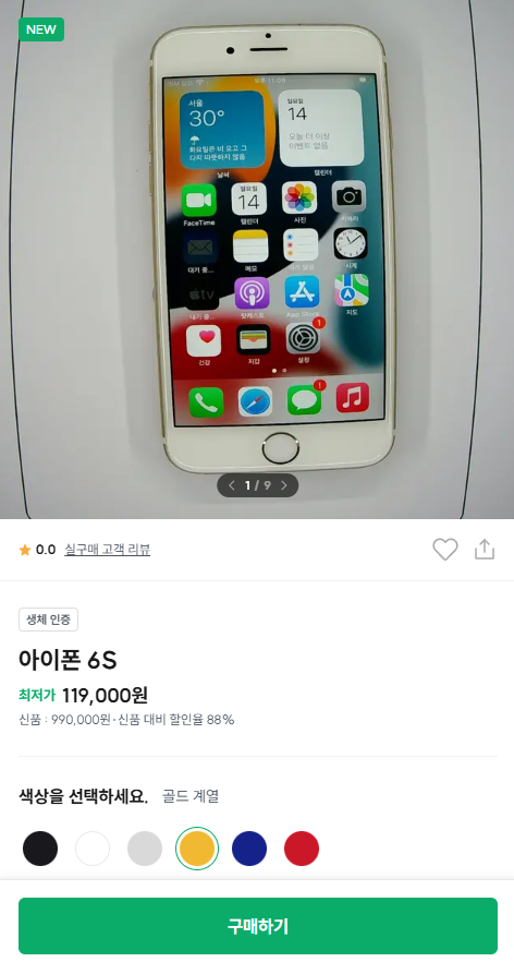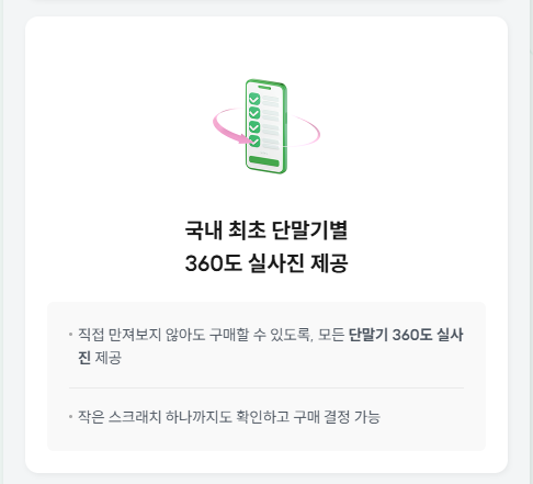 국내 최초 180일 보증 프로그램을 운영하는 점도 눈여겨볼 부분입니다. 주요 부품인 배터리, 디스플레이, 카메라 등 결함이 발생 시 최대 180일 이내 같은 모델로 무상 1:1 교환을 할 수 있어 중고폰 구매 시 기기결함으로 인해 발생하는 불편함에 대해서 크게 신경 쓰지 않아도 될 정도입니다.