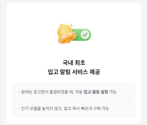 원하는 모델 입고 알림 서비스도 제공합니다. 구입하려는 중고폰이 품절되었다면 입고를 마냥 기다리는 게 쉽지 않은데요, 리본모바일은 입고 알림 서비스를 제공하고 있어 인기 모델이라도 놓치지 안호 입고 즉시 빠르게 구매할 수 있어 유용합니다. 앞으로는 품절된 중고폰이 입고될 때까지 플랫폼을 접속하며 확인하는 시간은 아낄 수 있을 듯합니다.