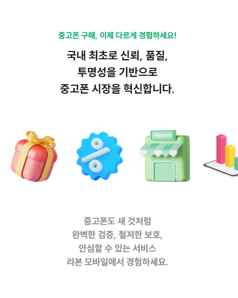 리본모바일은 ‘신뢰·품질·투명성’을 핵심 가치로 내세운 국내 최초의 중고폰 안심거래 플랫폼이에요. 무엇보다 단순히 중고폰을 사고파는 곳이 아니라, 모든 단말기의 상태를 데이터 기반으로 검증하고 문서로 보증해 주는 시스템을 갖추고 있어 독보적인 중고폰판매 플랫폼이라고 할 수 있습니다.